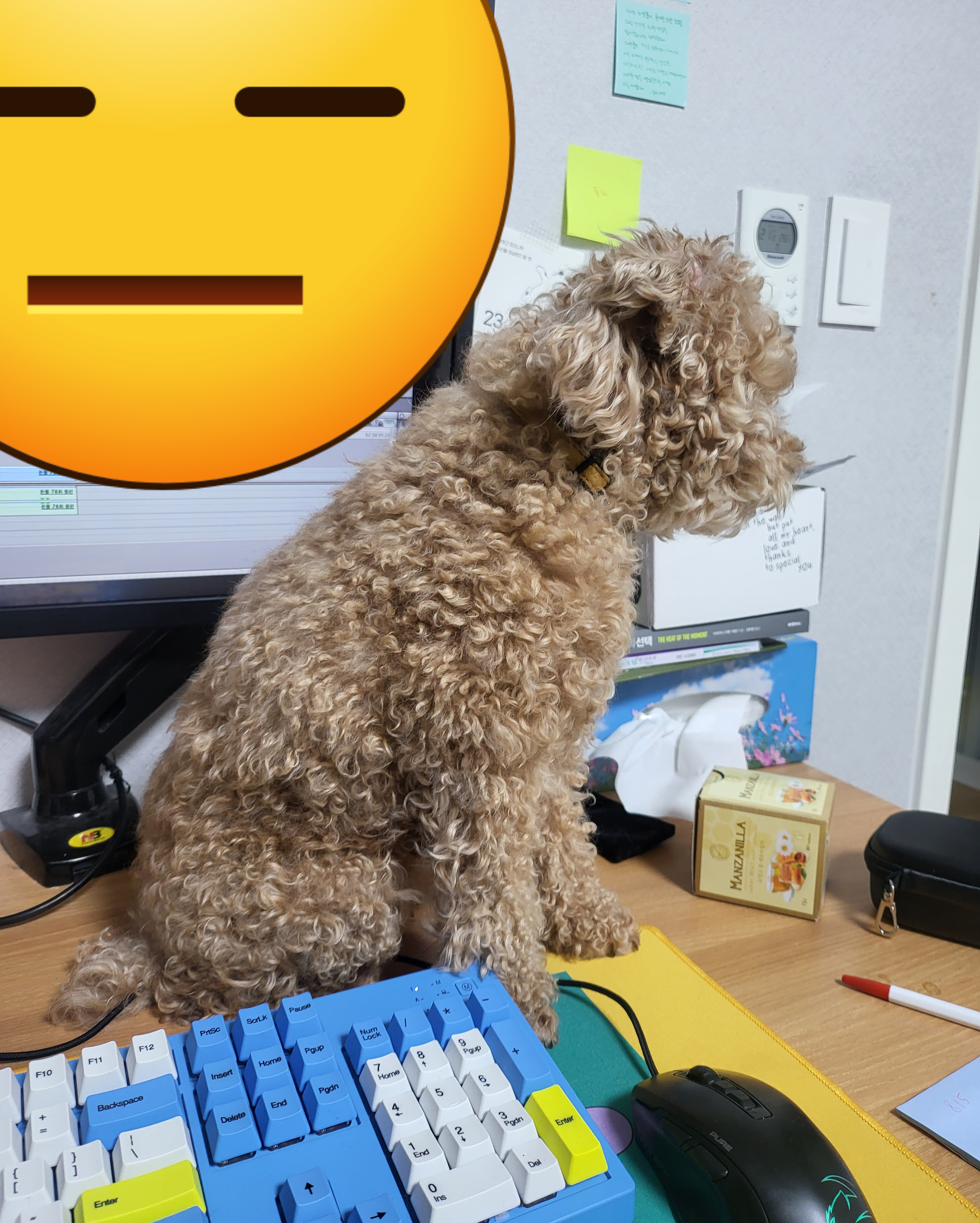 책상에 올라와서 못 가게 하니까 삐진 푸푸